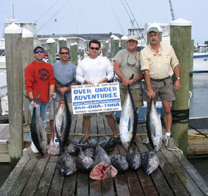 Over Under Adventures runs weekly open seating tuna charters, giving small groups of anglers the opportunity to team up on yellowfin tuna trips and split the expense with other anglers. We maintain a mailing list to let everyone know when we add new yellowfin tuna trips. We run open boat yellowfin fishing trips in Hatteras, NC, Ocean City, MD and New Jersey. Please join our mailing list to get on one of our split charters or open tuna trips. Reservations are required and typically these yellowfin tuna trips are planned 1-3 months in advance.